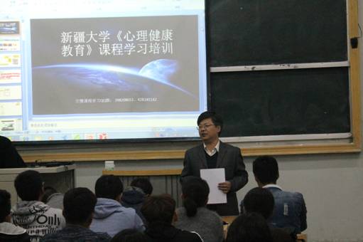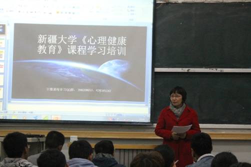 新疆大学大学生心理健康教育与咨询中心主任吴敏老师就《心理健康教育》课程面授和线下课程对同学们展开了全面的培训, 超星尔雅教育有限公司经理杨怀志向同学们系统的解说和展示了《心理健康教育》课程的网络学习平台,为同学们今后进行自主网络学习,提供了指导和帮助。