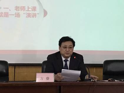 方睿老师将电视台主持人的职业要求与教师职业相结合,以“教师的语言魅力和礼仪的力量”为主题,就教师上课的演讲艺术,衣着、妆容、语言习惯等课堂礼仪与参训教师进行了交流。方睿老师结合教师在授课中的实例,说明了课堂礼仪对课堂教学的重要性。他指出,教学过程中要尊重学生,语言要准确,授课速度要适中,讲解要深入浅出,同时须改变教学语言的不良习惯,加强语言能力的练习,形成独特的个人授课风格。